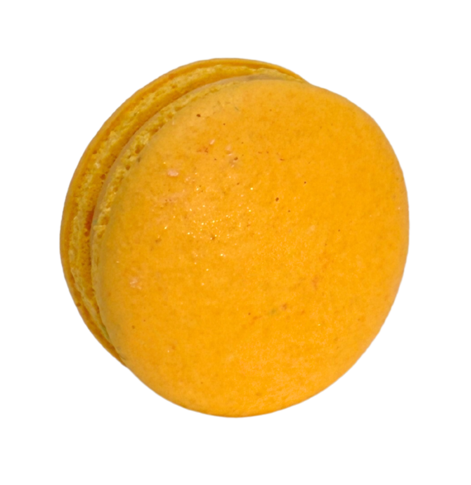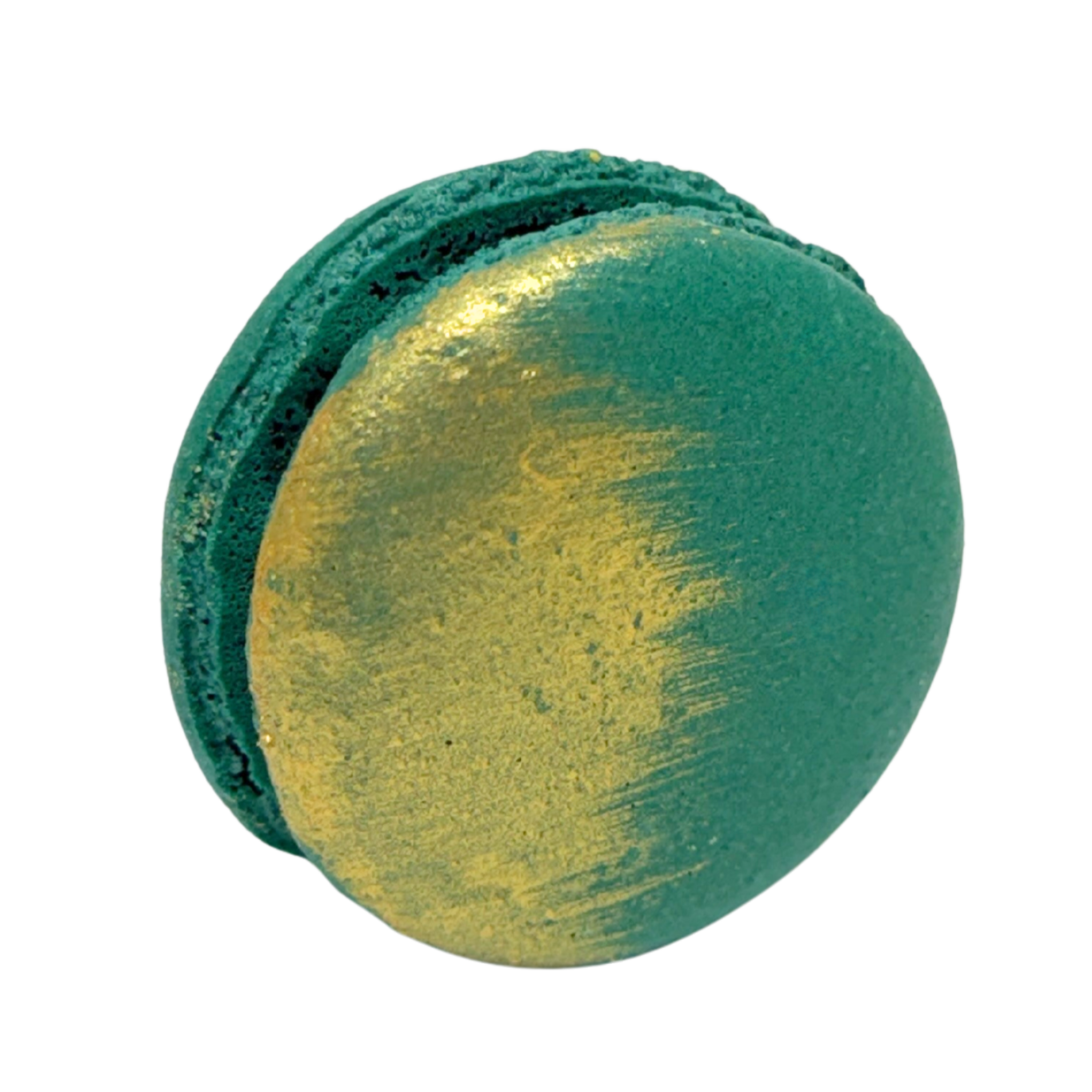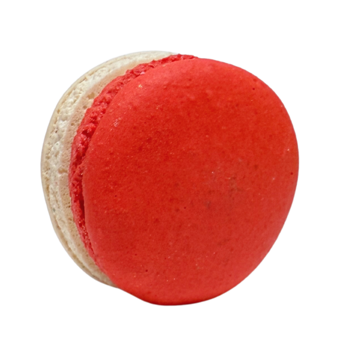 A dairy-free macaron with a coconut dark chocolate ganache, filled with roasted coconut.